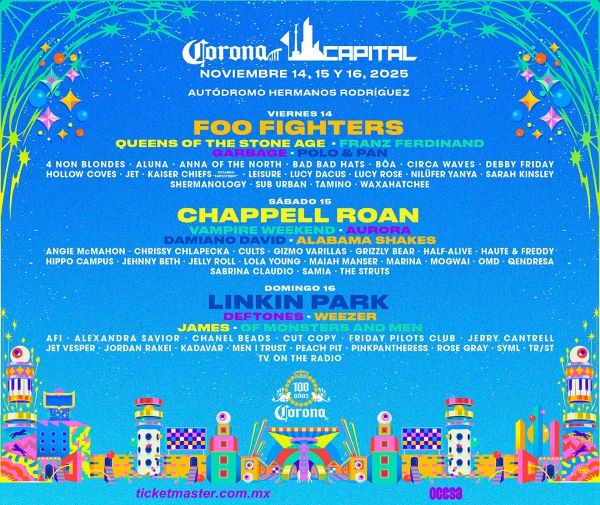El festival Corona Capital de este año nos recibe con una vibra rockera por parte de grandes artistas y agrupaciones, como lo son Foo Fighters, Queens of the Stone age, Damiano David (Maneskin) y Franz Ferdinand, por decir algunos.