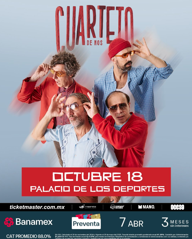 Recientemente el Cuarteto de Nos anunció en redes sociales que vuelve a Ciudad de México para ofrecer un show el próximo 18 de octubre en el Palacio de los deportes, en lo que será uno de los conciertos más grandes que ha ofrecido la banda en nuestra ciudad.