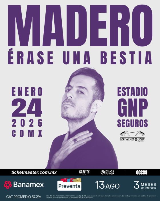 José Madero, que desde la salida de su ex grupo tuvo que empezar prácticamente de cero dejando las arenas de lado para regresar a espacios más íntimos como Caradura, tendrá la noche más importante de su trayectoria rumbo a sus diez años como solista. Esto ocurrirá el sábado 24 de enero de 2026 en el Estadio GNP Seguros en CDMX. La preventa Banamex se realizará 13 de agosto y, un día más tarde, se habilitará la venta general; ambos métodos de compran serán vía Ticketmaster.