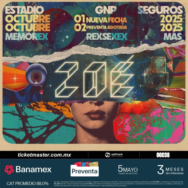 La cita para este reencuentro será la noche del miércoles 1 de octubre en el Estadio GNP, lugar donde volverán a sonar canciones del álbum Memo Rex Commander y el Corazón Atómico de la Vía Láctea (2006) junto a los demás éxitos de Zoé que han conquistado a toda una generación. La Preventa Banamex será el 5 de mayo a partir de las 10:00 h para un día después dar paso la venta general; todos los métodos de compra serán vía Ticketmaster.