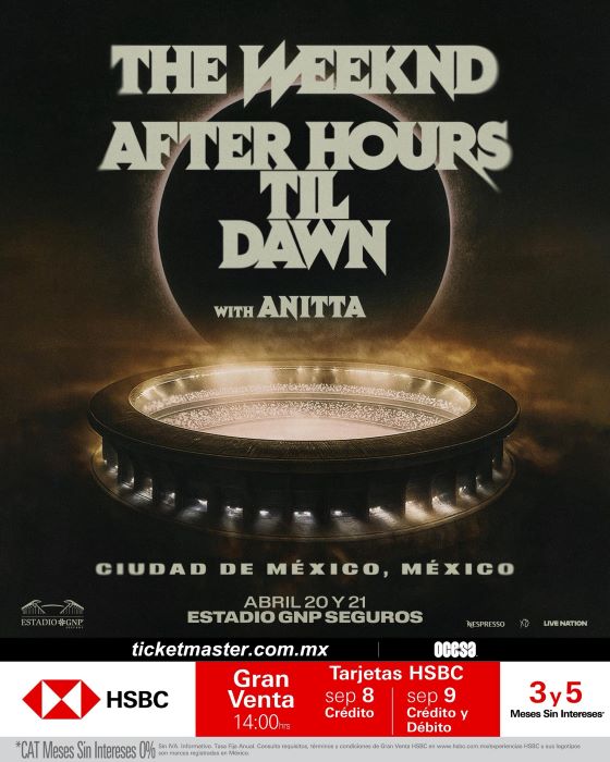Con el anuncio del álbum ‘Hurry Up Tomorrow’, la gira dio inicio con una serie de conciertos este 2025 en EU, recorriendo ciudades como Los Ángeles, Texas y Arizona, por mencionar algunos; sin embargo, recién se anunciaron las fechas correspondientes para Europa y Latinoamérica para el 2026. Dicha parte de la gira comenzará por Latinoamérica ¡Siendo la CDMX la primera afortunada en recibir a Abel! Esto ocurrirá en el Estadio GNP Seguros el 20 y 21 de abril (ojito con las fechas de Tecate Pa’l Norte) La preventa dará inicio los días 8 y 9 de septiembre para tarjetahabientes de HSBC mediante el portal de Ticketmaster.